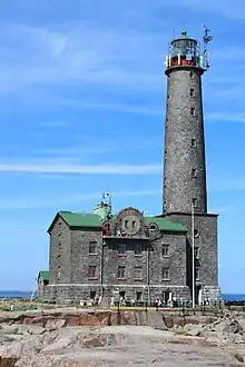 Bengtskär Lighthouse is located in the Archipelago Sea about 25 kilometers south west of Hanko, Finland.[2] The lighthouse was built in 1906 on the Bengtskär skerry where it rises 52 meters above sea level and is the highest one in the Nordic countries. The lighthouse had been planned for some time, but after the steamer s/s Helsingfors ran aground in 1905 in the vicinity en route from Lübeck to Helsinki resulting in several crew members trapped and drowned on board, the project gained urgency and was completed during the following year. Soviet troops stationed in Hanko during the Continuation War, disturbed by a Finnish observation post in the light house tried to blow up and destroy the lighthouse during the Battle of Bengtskär in 1941.