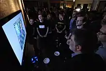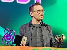Foddy also expressed an interest in games history, particularly the English and European games not widely known in the United States.[3] In 2014, his Indiecade presentation linked older, independently developed video games into the historical lineage of indie game development as it was contemporaneously known.[8] In 2016, Foddy co-developed Multibowl, a competitive minigame compilation of scenes from 1980s and 1990s video games. Similar to the microgames of WarioWare, Foddy presents two-player, 30-second challenge scenarios culled from 230 commercial games, with a point awarded to the player who first completes the scenario's objective. Foddy was spurred by his interest in video game history and the accessibility of video game emulators. He privileged original titles in his selections. The game exhibited at XOXO and Fantastic Arcade, and will not receive a public release to avoid legal issues.[9]