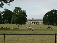A half-mile (800 metres) to the east of Benningholme is the Grade II listed Benningholme Hall, an 1820–30 late Georgian house. Built of grey gault brick, it is of a five-bay and two-storey construction with a hipped roof of Welsh slate. The central entrance is surrounded by a portico with an entablature supported by columns of ionic style. At the rear of the building is an iron veranda along its length, with a bow structure part enclosing a garden below. Attached to the original house is a 20th-century extension.[7][8][9]