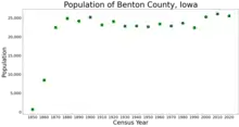 Benton County is a county in the U.S. state of Iowa. As of the 2020 census, the population was 25,575.[1] Its county seat and largest city is Vinton.[2] The county is named for Thomas Hart Benton, a U.S. Senator from Missouri.
