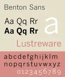 Media related to Benton Sans (typeface) at Wikimedia Commons- Font Bureau's website page on Benton Sans