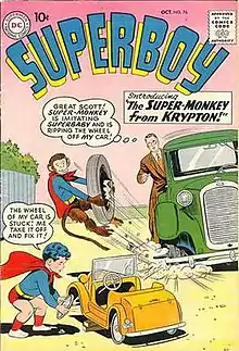 Beppo is a fictional monkey appearing in books published by DC Comics, primarily those featuring Superman. Created by Otto Binder and George Papp, he first appeared in Superboy #76 (October 1959).[1] He made sixteen appearances in Superman comics during the Silver Age of Comic Books.[2]