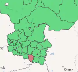 Berdyuzhsky District (Russian: Бердю́жский райо́н) is an administrative district (raion), one of the twenty-two in Tyumen Oblast, Russia.[1] As a municipal division, it is incorporated as Berdyuzhsky Municipal District.[6] It is located in the south of the oblast. The area of the district is 2,800 square kilometers (1,100 sq mi).[3] Its administrative center is the rural locality (a selo) of Berdyuzhye.[2] Population: 11,490 (2010 Census);[4] 13,019 (2002 Census);[8] 14,659 (1989 Census).[9] The population of Berdyuzhye accounts for 44.9% of the district's total population.[4]