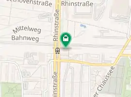 Friedrichsfelde Ost is a railway station in the Marzahn district of Berlin. The station is located north of the district border to Friedrichsfelde at the intersection of the route of the Prussian Eastern Railway with the Rhinstraße and is served by three lines of the Berlin S-Bahn.