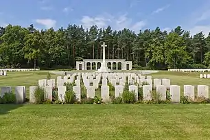The Berlin 1939–1945 War Cemetery is one of two Commonwealth War Graves Commission (CWGC) cemeteries in Berlin, the other being the World War I Berlin South-Western Cemetery in Stahnsdorf, Brandenburg.[1] The Berlin 1939–1945 War Cemetery was established in 1945 as a central burial ground for aircrew and prisoners of war who were interred in the Berlin area and in East Germany.[2] There are also 260 burials from the post-war British Occupation Authorities staff, or their relatives.[2] Of the wartime burials, about 80% are aircrew, killed in action over Germany: the remainder are prisoners of war.[2]