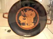 The Berlin Foundry Cup (German: Erzgießerei-Schale) is a red-figure kylix (drinking cup) from the early 5th century BC. It is the name vase of the Attic vase painter known conventionally as the Foundry Painter. Its most striking feature is the exterior depiction of activities in an Athenian bronze workshop or foundry. It is an important source on ancient Greek metal-working technology.