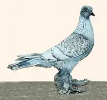 The Berlin Long-faced Tumbler is a breed of fancy pigeon. Berlin Long-faced Tumblers, along with other varieties of domesticated pigeons, are all descendants from the rock pigeon (Columba livia).