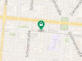 . It is the newest of the stations on the Stadtbahn. The island platform, which is covered by a gable roof supported by cast iron columns, and the open entrance hall have monument protection.[4] It has two entrances, one from a pedestrian zone connecting from the park of Savigny Platz via the street of Else-Ury-Bogen and a second from Schlüterstraße.