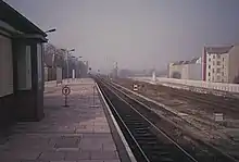 After World War II traffic restarted first with steam on 11 June 1945. On 19 July 1945 the electric train service resumed. From 1945 the station was situated next to the border between East and West Berlin, on the east side, in Berlin's Pankow district. In 1961 the Berlin Wall was built just to the east of the station. The station remained in service within the West Berlin S-Bahn system, and could only be reached by passengers from the adjacent West Berlin locality of Gesundbrunnen (then part of Wedding borough). The entrances to the east remained bricked up until 1989. Nevertheless, during this period, the station was staffed and controlled by East German railway officials, and while the West Berlin S-Bahn trains were passing between Wollankstraße station and Friedrichstraße station, they were driven by an East German State railway driver who returned home to East Berlin every day. This was at a time when only the select few were allowed to exit East Germany. Friedrichstraße station was situated inside East Berlin, but the West Berlin S-Bahn service operating from that station was not accessible to East Berliners.