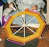 A Bermuda kite is a kite made using traditional geometric designs, are quite colorful, and is an art form as much as a recreational tool. They are traditionally flown in Bermuda only at Easter. The kites are typically hexagonal, though larger examples, particularly, may be octagonal, or have even more sides. They are constructed from flat sticks arrayed like spokes of a wheel, with a nail at the axis. A string passes around the ends of the sticks, marking out the edges, and concentric strings are arranged inside of this, all contributing to the rigidity of the structure. Colored tissue paper is glued into the spaces created between strings and sticks. Using different colors, patterns are created. The kite has a single stick secured at one end to the axis, and rising at a shallow angle from the plane created by the other sticks. This stick, which forms the head of the kite, extends considerably beyond the perimeter of the hexagon. It passes over the midpoint of one side of the hexagon, and a string creates a triangular shape from the corner at one side of the head stick, to its tip, and back to the opposite corner. Strips of paper are folded and glued along this string. A long, cloth strip tail is fitted to the kite, without which it would be unable to fly.