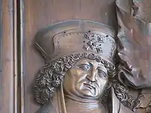 ![]() Bernard II of Baden, depicted on the altar of the church in Babenhausen | |