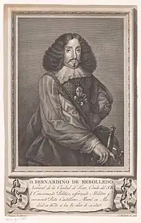 Bernardino de Rebolledo y Villamizar, Earl of Rebolledo and Graf (Count) of the Holy Roman Empire was a Spanish poet, soldier and diplomat (León, baptized May 31, 1597 - Madrid, March 27, 1676). He was a descendant of the 1st Count of Rebolledo, don Rodrigo, who received his surname and title from the king of Asturias and León don Ramiro I in 815 during the Reconquista.