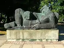 After WWII, the grave was unveiled officially a second time on August 25, 1946.[14] However, veterans' circles launched an initiative to erect a real monument at this very place. It was eventually inaugurated on December 29, 1986, on the 68th anniversary of the Greater Poland Uprising, based on a design by Stanisław Horno-Popławski and realized-cast by Aleksander Dętkoś, one of his student from Bydgoszcz.[16]