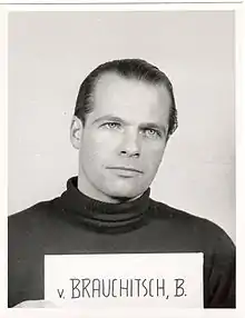 Born in 1911, as the son of Field Marshal Walther von Brauchitsch, he embarked on a military career. He took part in the invasion of France and the Low Countries, as the commander of a bombing unit. In April 1945, he was arrested together with Göring by the SS on charges of cowardice and betrayal.