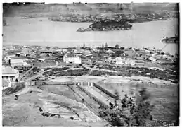 Holtermann financed and possibly participated in Beaufoy Merlin's project to photograph New South Wales and exhibit the results abroad to encourage immigration. The work was taken up after Merlin's death in 1873 by his assistant, Charles Bayliss. In 1875, Holtermann and Bayliss produced the Holtermann panorama, a series of "23 albumen silver photographs which join together to form a continuous 978-centimetre view of Sydney Harbour and its suburbs."[12] Some of the photographs, including the panorama, were displayed at the Philadelphia Centennial Exhibition, where they won a bronze medal.[12] The panorama was also displayed at the 1878 Exposition Universelle Internationale in Paris.[12]
