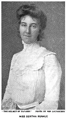 Bertha Runkle (1879–1958) was an American novelist and playwright born in Berkeley Heights, New Jersey.[1] From a literary family, she wrote five novels. Her first and best known, The Helmet of Navarre, was made into a Broadway play.[2]