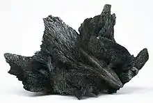 Berthierite is a mineral, a sulfide of iron and antimony with formula FeSb2S4. It is steel grey in colour with a metallic lustre which can be covered by an iridescent tarnish. Because of its appearance it is often mistaken for stibnite.