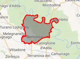 Bertonico borders the following municipalities: Ripalta Arpina, Moscazzano, Montodine, Turano Lodigiano, Castiglione d'Adda, Gombito, Terranova dei Passerini.