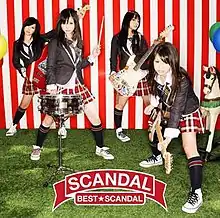 Best Scandal (stylized as BEST★SCANDAL) is the debut studio album of Japanese pop rock band Scandal. It was released in three versions with different covers: the regular CD only version, a limited version that consists of CD with DVD, and a collector's edition consist of a CD and a coffee table book (photobook). SCANDAL BY SCANDAL is a 284-page coffee table book that features photos of the band members taken by the band members themselves. The album reached no. 5 on the Oricon weekly charts and charted for 21 weeks.[2][3][4][5][6]