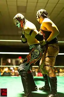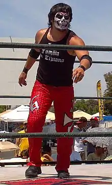 Leornardo Carrera Lizarraga[1] (born May 14, 1989)[2] is a Mexican luchador or professional wrestler, better known by the ring name Bestia 666. He is currently working for various promotions across Mexico, while also performing in the United States for several California-based promotions. Bestia 666's father is professional wrestler Leonardo Carrera, who performs as Damián 666 and who inspired his son's current character.[6] He is the current leader of La Rebelión Amarilla. He is one half of the current NWA World Tag Team Champions with his partner Mecha Wolf 450.