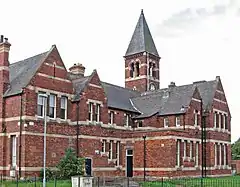 Before the industrial revolution, Bestwood was a small hamlet sustained by agriculture and framework knitting. Bestwood Village was greatly expanded when its coal mine was sunk in 1875 by the Lancaster family. Their Bestwood Coal and Iron Company (BC&IC) also opened an ironworks next to the colliery in 1881 with two blast furnaces and two more were added in 1890. It remained in operation until 1928. The coalmine was one of the most successful mines in the Nottinghamshire coalfield and at its peak employed 2000 men. It closed in 1967. The terraces on Park Road, St. Albans Road and The Square were built by the Bestwood Coal and Iron Company to house its workforce and it is now a conservation area. The company built its offices (with its distinctive clock tower) on Park Road.[2][3]