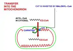 - If the fatty acyl-CoA contains a short chain, these short-chain fatty acids can simply diffuse through the inner mitochondrial membrane.[4]