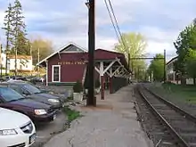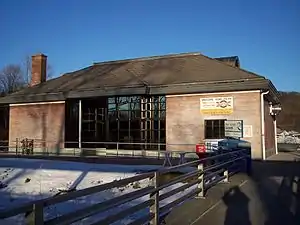 The original Bethel station opened in 1852 on the Danbury and Norwalk Railroad. The original station building eventually burned down on December 15, 1898, as a result of an overheated stove. The station was eventually replaced the following year in 1899. The 1899-built station served passengers until 1996, when it was taken out of service but not demolished.[3] The current station on Durant Avenue was built in 1996 and succeeds the previous station on Depot Place. The old station is still standing, but trains no longer stop at it. The building subsequently became a bicycle shop, then a brewery.[4]