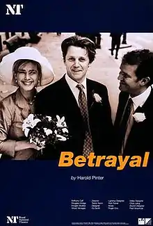 Betrayal is a play written by Harold Pinter in 1978. Critically regarded as one of the English playwright's major dramatic works, it features his characteristically economical dialogue, characters' hidden emotions and veiled motivations, and their self-absorbed competitive one-upmanship, face-saving, dishonesty, and (self-) deceptions.[1]