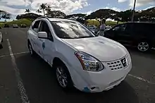 The second demo car was the Nissan eRogue, an electric car based on the Renault-Nissan Rogue, halfway between a sedan and an SUV in size.[55]