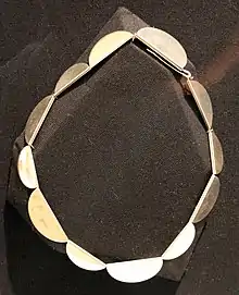 Given her early aspiration to become a sculptor,[7] it may not be surprising that she thinks of her jewelry as "sculpture in motion". Wearing her jewelry has been compared to having a miniature Calder mobile around your neck.[13]