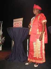 Betty Ogwaro served as Director of Animal Production for the Government of Southern Sudan until 1995 when she went into exile in the United Kingdom.[1] She was the chairperson for the Sudanese People Liberation Movement (SPLM) chapter office in the Midlands from 1999 to 2005,[1] and is one of the women leaders who successfully negotiated the inclusion of 25% minimum women representation at all levels of governance as part of the Comprehensive Peace Agreement.[2] Ogwaro is a founder of "Windows for Sudan", an NGO which seeks to promote the participation of Sudanese women in development and elevate their status in society.[3] She has also consulted for UNIFEM on women's issues.[4]