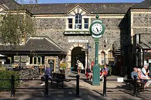 The comprehensive range of passenger station buildings have been preserved and sympathetically adapted for use as a cafe, coffee shop, holiday apartments and retail outlets. The station now functions as an unstaffed halt. The platform was refurbished and a digital Passenger Information System installed in Spring 2009. Train running information is also provided via telephone and timetable poster boards.[4]