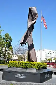 The Beverly Hills 9/11 Memorial Garden is a memorial space in honor of the victims of the September 11 attacks in Beverly Hills, California at the corner of North Rexford Drive and South Santa Monica Boulevard/Burton Way. Dedicated on September 11, 2011, exactly ten years after the attack, it is centered on a 30-foot bent steel beam salvaged from the wreckage of the World Trade Center. It was entirely funded by private donors. It forms part of the grounds of the Beverly Hills Fire Department.[1]