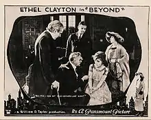 Beyond is a 1921 American drama silent film based on the play The Lifted Veil by Henry Arthur Jones.[1] The film was directed by William Desmond Taylor and produced by Jesse L. Lasky. It stars Ethel Clayton, Charles Meredith and Earl Schenck. The feature was distributed by Paramount Pictures and was set in part in New Zealand.