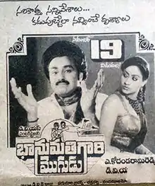 Bhanumati Gari Mogudu (transl. Bhanumati's husband) is a 1987 Indian Telugu-language comedy film, produced by D. V. S. Raju under the D.V.S. Enterprises banner and directed by A. Kodandarami Reddy. It stars Nandamuri Balakrishna, Vijayashanti and music composed by Chakravarthy.[1][2][3] Kalaimani, writer of this film directed Tamil remake of the film Therkathi Kallan (1988).