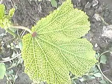 Leaf of okra showing symptoms of Bhendi yellow vein mosaic
