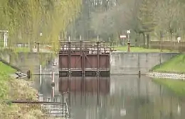 Białobrzegi Lock - the fourth lock on the Augustów Canal (from the Biebrza River). Located in the village of Białobrzegi in the administrative district of Gmina Augustów, within Augustów County, Podlaskie Voivodeship, in north-eastern Poland.[1] It lies approximately 6 kilometres (4 mi) south of Augustów and 78 km (48 mi) north of the regional capital Białystok. In the years 1959 - 1964 was demolished and built, using original art, a new 150 meters on the other side of the road Augustów – Białystok. The reason for this change were to be the cause of the military.