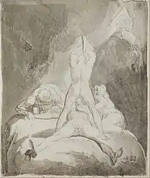 Bia and her siblings were constant companions of Zeus.[4] They achieved this honour after supporting him in the Titan War along with their mother.[5] Bia is one of the characters named in the Greek tragedy Prometheus Bound, attributed to Aeschylus, where Hephaestus is compelled by the gods to bind Prometheus after he was caught stealing fire and offering the gift to mortals. Although she appears alongside her brother Kratos, she does not speak.