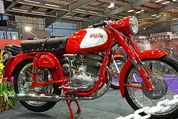 After World War II Bianchi produced 123 cc and 248 cc ohc single racers, and in the late 1950s released new 248 cc and 348 cc dohc twins, designed by Colombo and Lino Tonti. There were a few over-bored 498 cc works versions for the 500 cc class races.[1] In 1946 Edoardo died, and control of the firm passed to his son Giuseppe.
