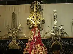 Bibi-Ka-Alam or Bibi-Ka-Alawa is an annual procession during Muharram. Bibi-ka-Alam, installed in the name of Imam Hussain, grandson of Muhammad and son of Ali ibn Abi Talib and Muhammad's daughter Fatimah, at the Bibi ka Alawa at Dabirpura,[1] Old City (Hyderabad, India) on the 10th day following Moharram.[2] It is a Shia event. The procession starts at Alawa-e-bibi situated at Dabirpura and ends at Chaderghat. During the procession the devotees mourn the death by reciting Nauhey, (narrating the incidents occurred during 10th Moharram 60 Hijri in Karbala). The daughter of Mohammed, Fatima-e-Zehra, is called Bibi. The locality is known as Mohalla Bibi Ka Alawa.[3]