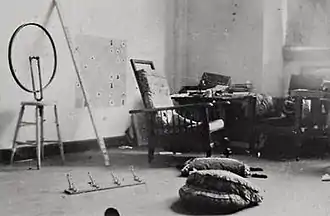 | Location | Original studio photograph. Shown to the left is the 2nd version of Bicycle Wheel, 1916-17. The original 1913 version and this 2nd version are lost. There are no known representations of the original 1913 Bicycle Wheel and Stool.[1] |