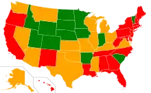 The requirement to wear bicycle helmets in the United States varies by jurisdiction and by age of the cyclist, for example 21 states and the District of Columbia have statewide mandatory helmet laws for children. 29 US states have no statewide law, and 13 of these states have no such laws in any lower-level jurisdiction either.[1]