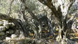 The Bidni, which is also referred to as Bitni, is an olive cultivar from the Mediterranean island of Malta. The fruit is small in size, hearty with a "violet colour",[1] and is renowned for its superior oil which is low in acidity.[2] The latter is generally attributed to the poor quality alkaline soil found on the Maltese Islands.[3] As an indigenous olive cultivar, the Bidni has developed a unique DNA profile,[4] and is believed to be among the most ancient species on the island,[5] triggering local authorities to declare some of these ancient trees as "national monuments",[6] and as having an "Antiquarian Importance",[7] a status which is enjoyed by only a handful of other species.