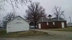 The Big 4 Fair Art Hall, also known as Hollenbeck Hall, is a historic building located in the Wapello County Fairgrounds in Eldon, Iowa, United States. The single-story brick structure was built in 1911, replacing an older building that had been destroyed in a fire. It is thought to be the oldest original brick building on a fairgrounds in the state.[2] The building has four wings that were devoted to the four Iowa counties in the Big 4 Fair Association, Wapello, Davis (South), Jefferson (east), and Van Buren (southeast). People from each county would display their produce, grain, and arts and crafts in their county's wing. During other times of the year, the building was used for meetings and entertainment. The building has been completely restored and is used for exhibits during the fair.