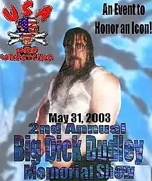 The Big Dick Dudley Memorial Show was an annual professional wrestling memorial event produced by the USA Pro Wrestling (USA Pro) promotion, held between 2002 and 2003. The show was held in memory of Big Dick Dudley, who died of kidney failure at his apartment in Copiague, New York on May 16, 2002, with a portion of the proceeds going to his family. A collection from the audience was taken up during the shows as well. The event also served as a reunion show for former alumni of Extreme Championship Wrestling, where Dudley had spent much of his career as a member of The Dudley Brothers, as many appeared at the show to pay their respects.[1]