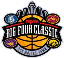 The Hy-Vee Classic consisted of games between Iowa's four NCAA Division I men's basketball teams: Iowa, Iowa State, Northern Iowa, and Drake. For 2012β2018, the rivalry consisted of a one-day two game event at Wells Fargo Arena each December, originally called the Big Four Classic but now known as the Hy-Vee Classic, Iowa and Iowa State playing each other in an ongoing-home and home series, and Drake and Northern Iowa playing each other regularly as members of the Missouri Valley Conference. Grinnell College was previously considered a part of the Big Four prior to their demotion to NCAA Division III athletics when they were members of the MVIAA and Missouri Valley Conference.