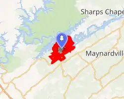 The community of Loyston (initially known as Loy's Crossroads), now under the lake just north of the park, was established by John Loy in the early 19th century.[8] The Loy and Sharp families both operated iron furnaces using ore mined along Big Ridge, creating mostly tools and household items.[9] By the early 20th century, Loyston had grown into a regional trading center for the Big Ridge area.[10]