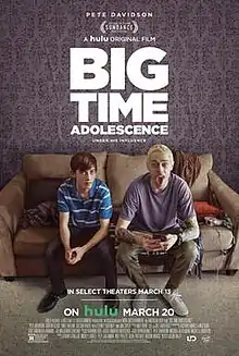 Big Time Adolescence is a 2019 American coming-of-age comedy film written and directed by Jason Orley, in his directorial debut.[2] It stars Pete Davidson, Griffin Gluck, Emily Arlook, Colson Baker, Sydney Sweeney and Jon Cryer.