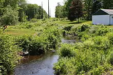 Hemlock trees form a canopy over Big Wapwallopen Creek in some places.[11] The Wapwallopen Gorge is listed as a Locally Significant site on the Luzerne County Natural Areas Inventory. Hemlock and yellow birch are common at the gorge's upper end. However, river birch and sycamore are more common at the lower end of the gorge.[14] There are riparian forests along Big Wapwallopen Creek in the American Legion Post 781 land tract. The tract of land also contains some wet areas such as vernal pools and marshes. These areas provide breeding grounds for reptiles, amphibians, fish, and aquatic invertebrates.[19]