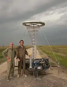 The film provides a historical and contemporary sketch of human attempts to tame the forces of weather. Many different weapons are used worldwide – Bangladesh builds barrier walls to protect against flooding, China aims rockets at threatening clouds, and Italy fires cannons at hail to protect the year’s wine harvest. Given this background, the film focuses on the question of how to deal with the ongoing climatic change – by adapting, or by waging war on the weather? In a quirky blend of land-art performance and old-fashioned road movie, Bigert & Bergström traveled to the tornado belt of the American Midwest with their mechanical sculpture, Tornado Diverter, to see if they can stop a tornado. This visionary machine is the brainchild of Russian scientist Vladimir Pudov. Newly retired when the duo contacted him, Pudov was no longer able to build his invention, but Bigert & Bergström were so fascinated by his machine that they decided to build it for him.
